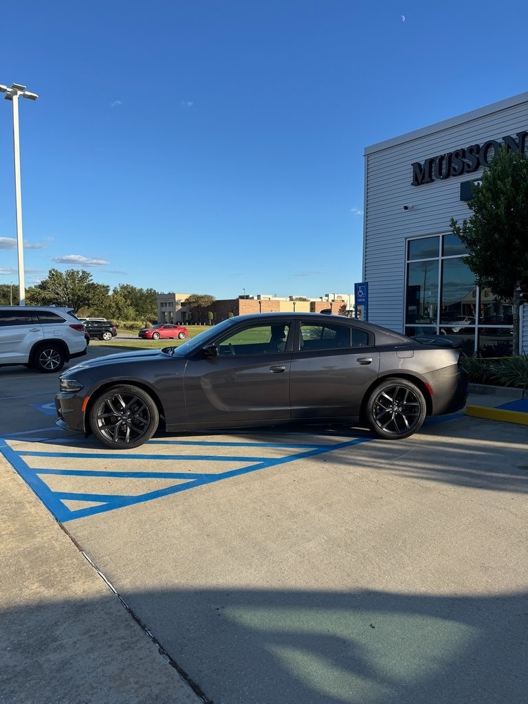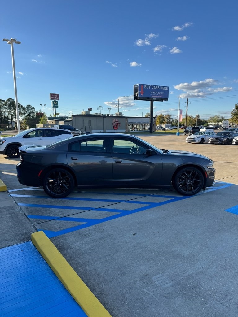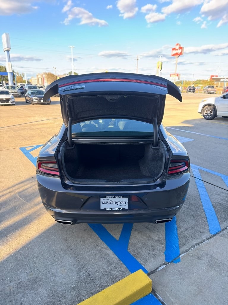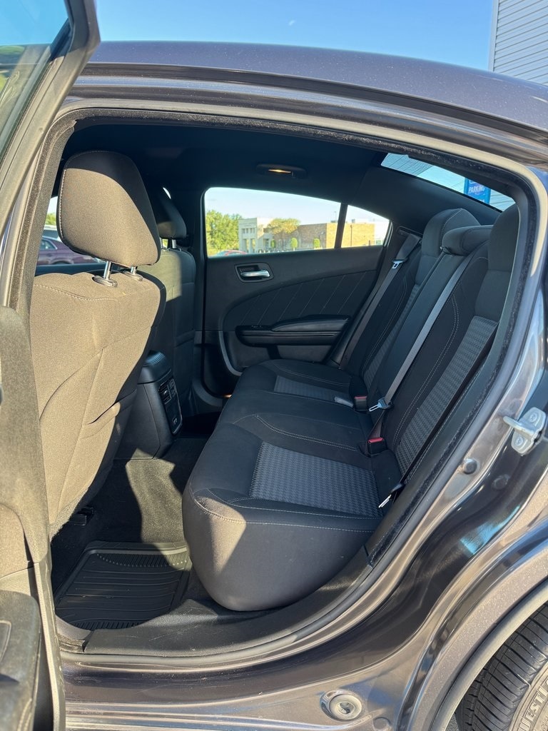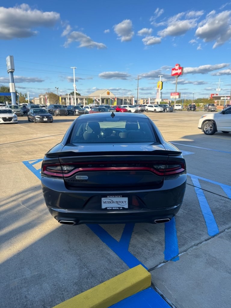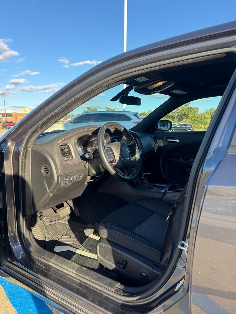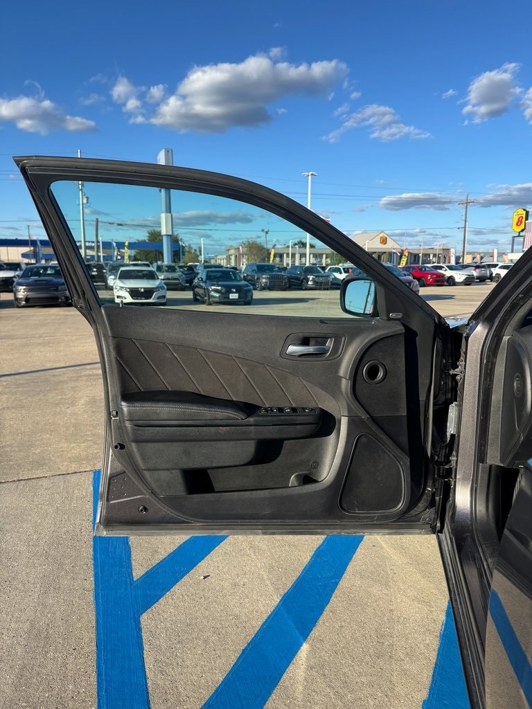 Black Cloth, 1-Yr SiriusXM Guardian Trial, 2-Piece Shark Fin Antenna, 276 Watt Amplifier, 4-Wheel Disc Brakes, 4G LTE Wi-Fi Hot Spot, 6 Speakers, 8.4" Touchscreen Display, ABS brakes, Air Conditioning, Alloy wheels, AM/FM radio: SiriusXM, Anti-whiplash front head restraints, Apple CarPlay, Apple CarPlay/Android Auto, AutoStick Automatic Transmission, Black 1-Piece Performance Spoiler, Blacktop Package (DISC), Brake assist, Bumpers: body-color, Compass, Delay-off headlights, Dodge Grille Badge, Driver door bin, Driver vanity mirror, Dual front impact airbags, Dual front side impact airbags, Electronic Stability Control, Emergency communication system: SiriusXM Guardian, For Details, Visit DriveUconnect.com, Four wheel independent suspension, Front anti-roll bar, Front Bucket Seats, Front Center Armrest, Front dual zone A/C, Front reading lights, Fully automatic headlights, Gloss Black Fascia Applique, Gloss Black I/P Cluster Trim Rings, GPS Antenna Input, HD Radio, Houndstooth Cloth Sport Seat, Illuminated entry, Integrated Center Stack Radio, Integrated Voice Command w/Bluetooth, Knee airbag, Leather Shift Knob, Low tire pressure warning, Manufacturer's Statement of Origin, Media Hub (2 USB, AUX), Occupant sensing airbag, Outside temperature display, Overhead airbag, Overhead console, Panic alarm, ParkView Rear Back-Up Camera, Passenger door bin, Passenger vanity mirror, Power door mirrors, Power driver seat, Power steering, Power windows, Quick Order Package 2EG, Radio: Uconnect 4C w/8.4" Display, Rear anti-roll bar, Rear reading lights, Rear seat center armrest, Rear window defroster, Remote keyless entry, Satin Black Charger Decklid Badge, Satin Black Dodge Tail Lamp Badge, Speed control, Speed-Sensitive Wipers, Split folding rear seat, Sport Suspension, Steering wheel mounted audio controls, Tachometer, Telescoping steering wheel, Tilt steering wheel, Traction control, Trip computer, USB Host Flip, Variably intermittent wipers, Wheels: 17" x 7" Painted Cast Aluminum, Wheels: 20" x 8" Black Noise Painted (DISC). Clean CARFAX.