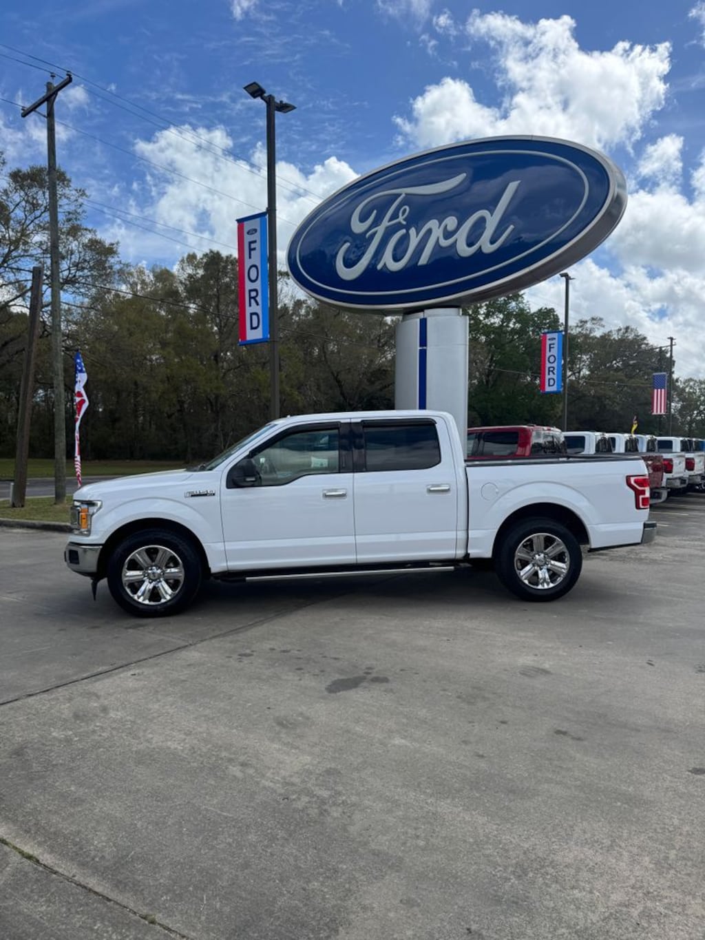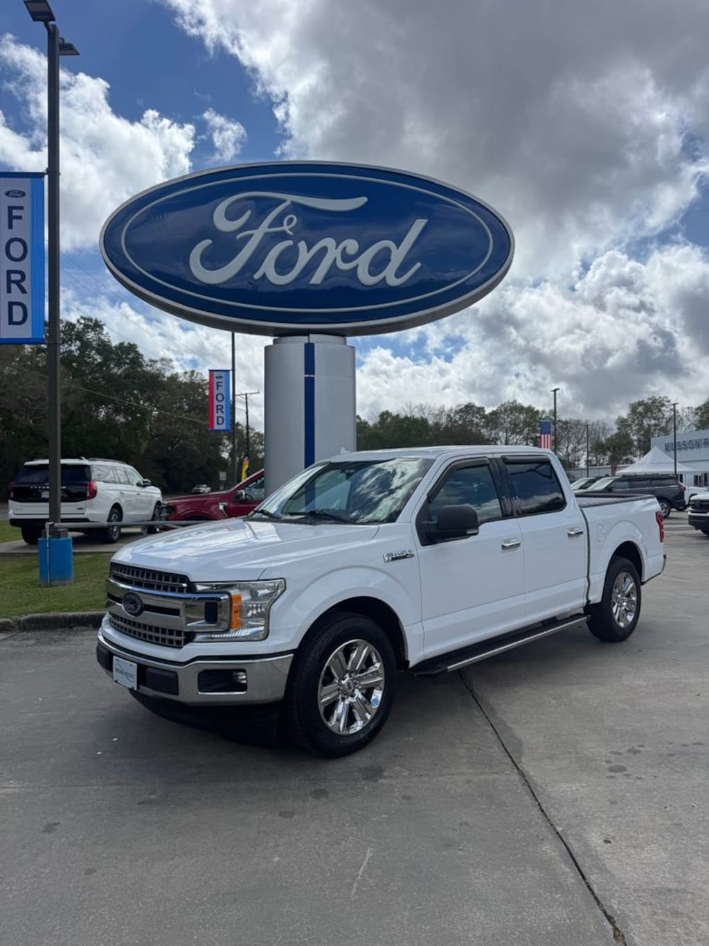 2018 Ford F-150 XLT Oxford White RWD 10-Speed Automatic 2.7L V6 EcoBoost 10-Way Power Driver & Passenger Seats, 110V/400W Outlet, 2-Bar Style Grille w/Chrome 2 Minor Bars, 3.55 Axle Ratio, 4-Wheel Disc Brakes, 4.2" Productivity Screen in Instrument Cluster, 6 Speakers, 8-Way Power Driver Seat, ABS brakes, Air Conditioning, Alloy wheels, AM/FM radio, Auto-Dimming Rear-View Mirror, Brake assist, Bumpers: chrome, CD player, Chrome Door & Tailgate Handles w/Body-Color Bezel, Chrome Step Bars, Class IV Trailer Hitch Receiver, Cloth 40/20/40 Front Seat, Compass, Delay-off headlights, Driver door bin, Driver vanity mirror, Dual front impact airbags, Dual front side impact airbags, Electronic Stability Control, Emergency communication system: 911 Assist, Equipment Group 302A Luxury, Exterior Parking Camera Rear, Fixed Backlight w/Privacy Glass, Front anti-roll bar, Front Center Armrest w/Storage, Front fog lights, Front reading lights, Front wheel independent suspension, Fully automatic headlights, Heated Front Seats, Illuminated entry, Leather-Wrapped Steering Wheel, Low tire pressure warning, Occupant sensing airbag, Outside temperature display, Overhead airbag, Panic alarm, Passenger door bin, Passenger vanity mirror, Power door mirrors, Power Glass Heated Sideview Mirrors, Power steering, Power windows, Power-Adjustable Pedals, Power-Sliding Rear Window, Radio data system, Radio: AM/FM Stereo/Single-CD Player, Radio: Single-CD/SiriusXM w/7 Speakers, Rear reading lights, Rear step bumper, Rear Under-Seat Storage, Rear Window Defroster, Remote keyless entry, Remote Start System, Reverse Sensing System, Security system, Single-Tip Chrome Exhaust, Speed control, Speed-sensing steering, Split folding rear seat, Steering wheel mounted audio controls, SYNC, SYNC 3, Tachometer, Telescoping steering wheel, Tilt steering wheel, Traction control, Variably intermittent wipers, Voice-Activated Touchscreen Navigation System, Voltmeter, Wheels: 20" Chrome-Like PVD, XLT Chrome Appearance Package.