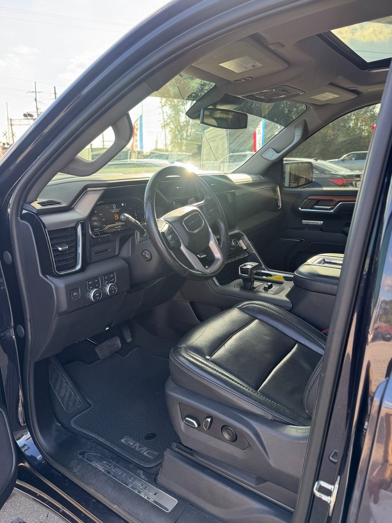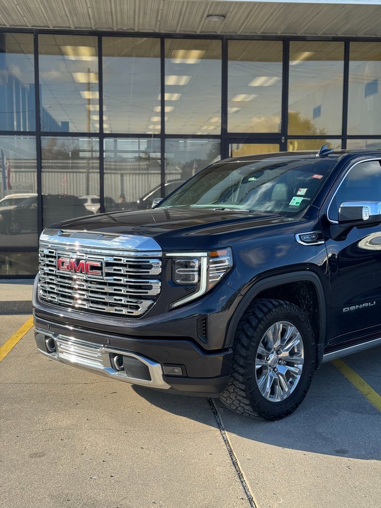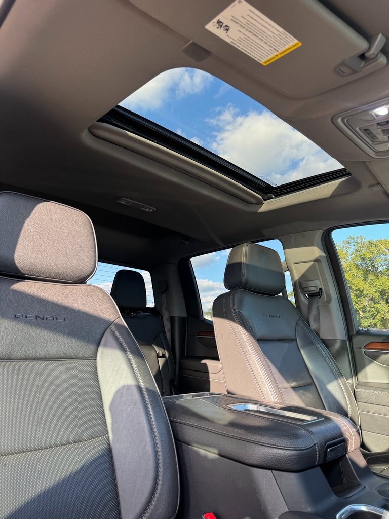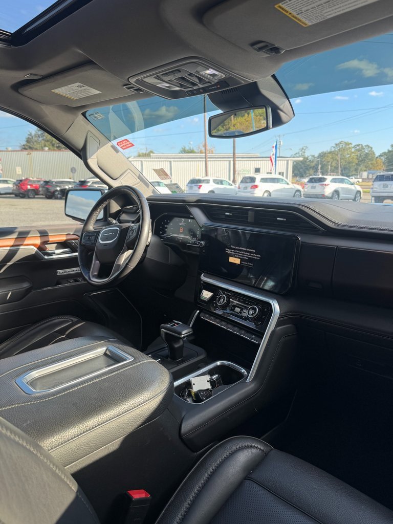 LOCAL TRADE, NON SMOKER, NAVIGATION, Apple CarPlay, One Owner, 10-Speed Automatic, 4WD, Jet Black Leather, 10-Way Power Driver Seat Adjuster w/Lumbar, 10-Way Power Passenger Seat Adjuster w/Lumbar, 120-Volt Bed Mounted Power Outlet, 120-Volt Instrument Panel Power Outlet, 170 Amp Alternator, 2 Charge/Data USB Ports Inside Center Console, 2 Type-C Charge-Only Rear USB Ports, 2 USB Ports, 3 Years of OnStar Safety & Security, 3.23 Rear Axle Ratio, 4-Wheel Disc Brakes, 7 Speakers, ABS brakes, Adaptive suspension, Air Conditioning, Alloy wheels, AM/FM radio: SiriusXM with 360L, Apple CarPlay/Android Auto, Auto High-beam Headlights, Auto-dimming door mirrors, Auto-dimming Rear-View mirror, Auto-Locking Rear Differential, Automatic Emergency Braking, Automatic temperature control, Auxiliary External Transmission Oil Cooler, Bed View Camera, Brake assist, Buckle to Drive, Bumpers: body-color, Chrome Header w/Signature Denali Chrome Grille, Chrome Recovery Hooks, Chrome Wheel To Wheel Assist Steps, Color-Keyed Carpeting Floor Covering, Compass, Deep-Tinted Glass, Delay-off headlights, Denali Premium Suspension w/Adaptive Ride Control, Driver door bin, Driver Memory, Driver vanity mirror, Dual front impact airbags, Dual front side impact airbags, Electric Rear-Window Defogger, Electrical Steering Column Lock, Electronic Stability Control, Emergency communication system: OnStar and GMC Connected Services capable, Floor-Mounted Center Console, Following Distance Indicator, Forge Perforated Leather Seat Trim, Forward Collision Alert, Front anti-roll bar, Front Bucket Seats, Front Center Armrest, Front dual zone A/C, Front fog lights, Front Pedestrian Braking, Front Rainsensing Wipers, Front reading lights, Front wheel independent suspension, Fully automatic headlights, Garage door transmitter, Genuine wood console insert, Genuine wood dashboard insert, Genuine wood door panel insert, GMC Connected Access Capable, GMC MultiPro Power Steps, HD Surround Vision, Heated 2nd Row Outboard Seats, Heated door mirrors, Heated Driver & Front Outboard Passenger Seating, Heated front seats, Heated rear seats, Heated Steering Wheel, Heated steering wheel, Heavy-Duty Air Filter, Hill Descent Control, Hitch Guidance, Hitch Guidance w/Hitch View, Illuminated entry, In-Vehicle Trailering App, Integrated Trailer Brake Controller, IntelliBeam Automatic High Beam On/Off, Keyless Open & Start, Lane Keep Assist w/Lane Departure Warning, LED Cargo Area Lighting, Low tire pressure warning, Memory seat, Navigation System, Not Equipped w/Dynamic Fuel Management, Not Equipped w/Steering Column Lock, Occupant sensing airbag, OnStar & GMC Connected Services Capable, Outside temperature display, Overhead airbag, Overhead console, Panic alarm, Passenger door bin, Passenger vanity mirror, Perimeter Lighting, Power Door Locks, Power door mirrors, Power driver seat, Power Front Passenger Windows w/Express Up/Down, Power Front Windows w/Driver Express Up/Down, Power passenger seat, Power Rake & Telescoping Steering Column, Power Rear Windows w/Express Down, Power Sliding Rear Window w/Rear Defogger, Power steering, Power Sunroof, Power windows, Preferred Equipment Group 5SA, Premium audio system: GMC Infotainment System, Premium Bose 7-Speaker Sound System, Push Button Start, Radio data system, Radio: Premium GMC Infotainment Audio System, Rain sensing wipers, Rear Cross Traffic Braking, Rear Pedestrian Detection, Rear reading lights, Rear seat center armrest, Rear step bumper, Rear Wheelhouse Liners, Rear window defroster, Remote keyless entry, Remote Vehicle Starter System, Safety Alert Seat, Security system, SiriusXM w/360L, Speed control, Speed-sensing steering, Split folding rear seat, Spray-On Pickup Bed Liner w/Denali Logo, Steering Wheel Audio Controls, Steering wheel mounted audio controls, Tachometer, Telescoping steering wheel, Theft Deterrent System (Unauthorized Entry), Tilt steering wheel, Traction control, Trai