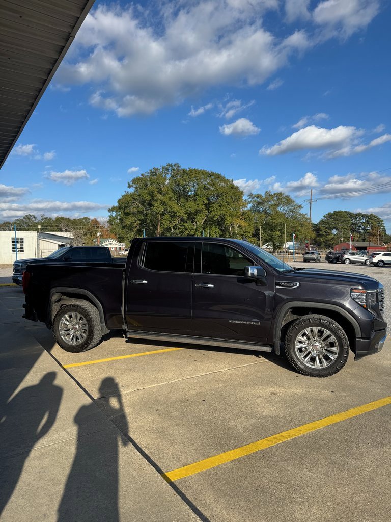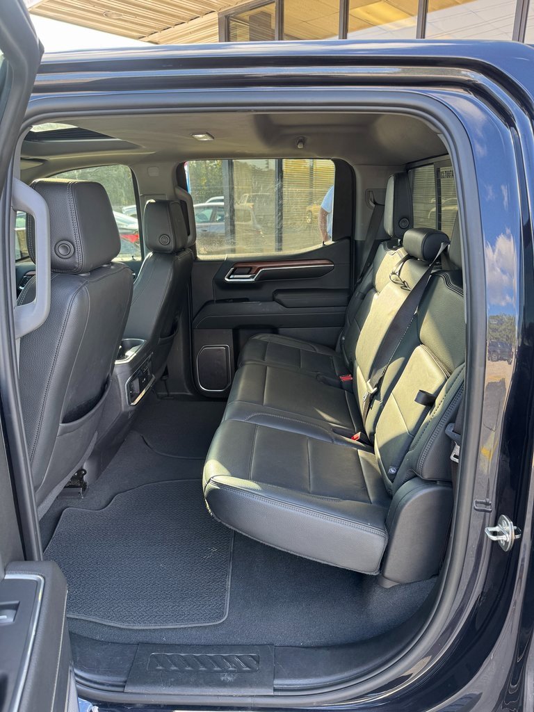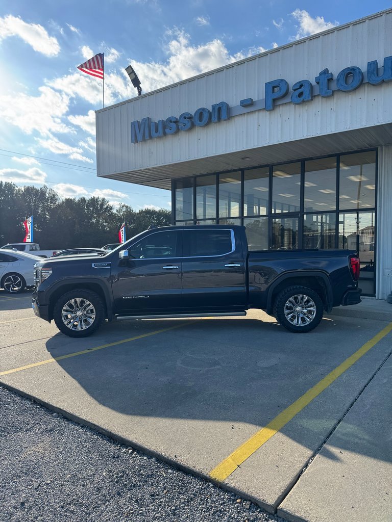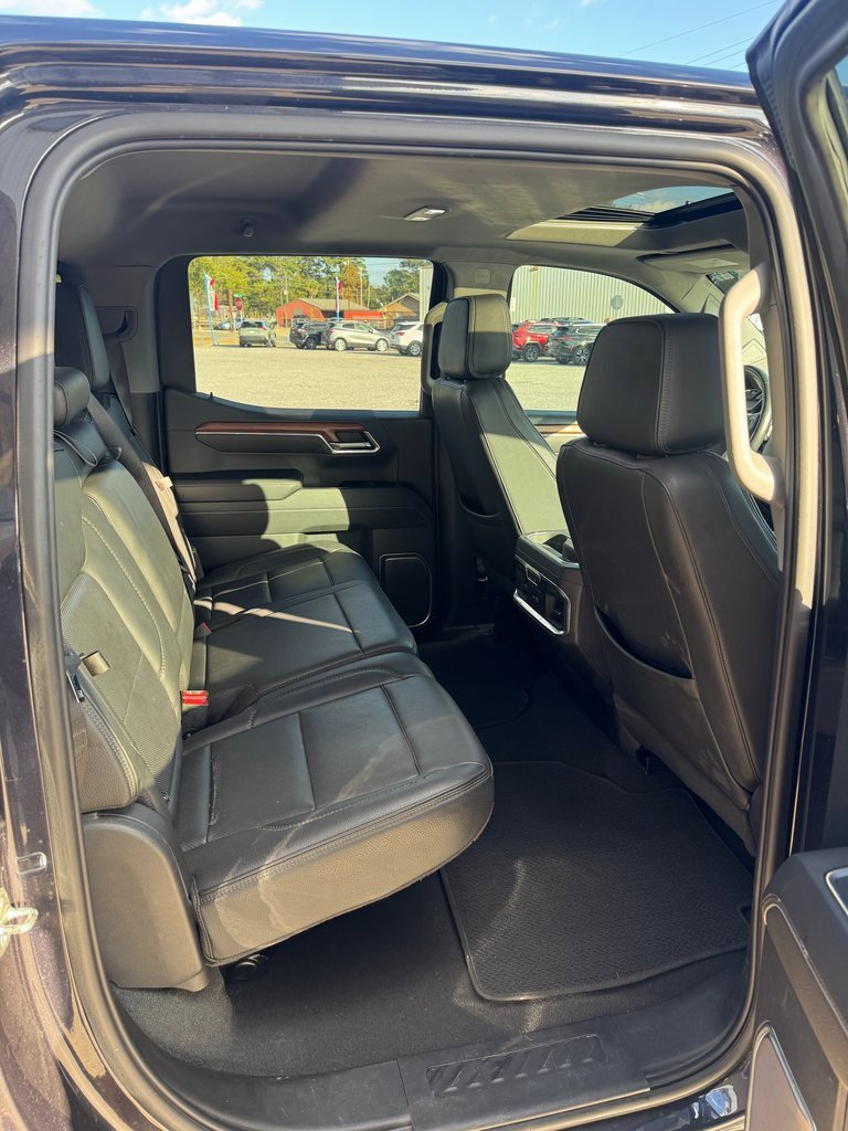 LOCAL TRADE, NON SMOKER, NAVIGATION, Apple CarPlay, One Owner, 10-Speed Automatic, 4WD, Jet Black Leather, 10-Way Power Driver Seat Adjuster w/Lumbar, 10-Way Power Passenger Seat Adjuster w/Lumbar, 120-Volt Bed Mounted Power Outlet, 120-Volt Instrument Panel Power Outlet, 170 Amp Alternator, 2 Charge/Data USB Ports Inside Center Console, 2 Type-C Charge-Only Rear USB Ports, 2 USB Ports, 3 Years of OnStar Safety & Security, 3.23 Rear Axle Ratio, 4-Wheel Disc Brakes, 7 Speakers, ABS brakes, Adaptive suspension, Air Conditioning, Alloy wheels, AM/FM radio: SiriusXM with 360L, Apple CarPlay/Android Auto, Auto High-beam Headlights, Auto-dimming door mirrors, Auto-dimming Rear-View mirror, Auto-Locking Rear Differential, Automatic Emergency Braking, Automatic temperature control, Auxiliary External Transmission Oil Cooler, Bed View Camera, Brake assist, Buckle to Drive, Bumpers: body-color, Chrome Header w/Signature Denali Chrome Grille, Chrome Recovery Hooks, Chrome Wheel To Wheel Assist Steps, Color-Keyed Carpeting Floor Covering, Compass, Deep-Tinted Glass, Delay-off headlights, Denali Premium Suspension w/Adaptive Ride Control, Driver door bin, Driver Memory, Driver vanity mirror, Dual front impact airbags, Dual front side impact airbags, Electric Rear-Window Defogger, Electrical Steering Column Lock, Electronic Stability Control, Emergency communication system: OnStar and GMC Connected Services capable, Floor-Mounted Center Console, Following Distance Indicator, Forge Perforated Leather Seat Trim, Forward Collision Alert, Front anti-roll bar, Front Bucket Seats, Front Center Armrest, Front dual zone A/C, Front fog lights, Front Pedestrian Braking, Front Rainsensing Wipers, Front reading lights, Front wheel independent suspension, Fully automatic headlights, Garage door transmitter, Genuine wood console insert, Genuine wood dashboard insert, Genuine wood door panel insert, GMC Connected Access Capable, GMC MultiPro Power Steps, HD Surround Vision, Heated 2nd Row Outboard Seats, Heated door mirrors, Heated Driver & Front Outboard Passenger Seating, Heated front seats, Heated rear seats, Heated Steering Wheel, Heated steering wheel, Heavy-Duty Air Filter, Hill Descent Control, Hitch Guidance, Hitch Guidance w/Hitch View, Illuminated entry, In-Vehicle Trailering App, Integrated Trailer Brake Controller, IntelliBeam Automatic High Beam On/Off, Keyless Open & Start, Lane Keep Assist w/Lane Departure Warning, LED Cargo Area Lighting, Low tire pressure warning, Memory seat, Navigation System, Not Equipped w/Dynamic Fuel Management, Not Equipped w/Steering Column Lock, Occupant sensing airbag, OnStar & GMC Connected Services Capable, Outside temperature display, Overhead airbag, Overhead console, Panic alarm, Passenger door bin, Passenger vanity mirror, Perimeter Lighting, Power Door Locks, Power door mirrors, Power driver seat, Power Front Passenger Windows w/Express Up/Down, Power Front Windows w/Driver Express Up/Down, Power passenger seat, Power Rake & Telescoping Steering Column, Power Rear Windows w/Express Down, Power Sliding Rear Window w/Rear Defogger, Power steering, Power Sunroof, Power windows, Preferred Equipment Group 5SA, Premium audio system: GMC Infotainment System, Premium Bose 7-Speaker Sound System, Push Button Start, Radio data system, Radio: Premium GMC Infotainment Audio System, Rain sensing wipers, Rear Cross Traffic Braking, Rear Pedestrian Detection, Rear reading lights, Rear seat center armrest, Rear step bumper, Rear Wheelhouse Liners, Rear window defroster, Remote keyless entry, Remote Vehicle Starter System, Safety Alert Seat, Security system, SiriusXM w/360L, Speed control, Speed-sensing steering, Split folding rear seat, Spray-On Pickup Bed Liner w/Denali Logo, Steering Wheel Audio Controls, Steering wheel mounted audio controls, Tachometer, Telescoping steering wheel, Theft Deterrent System (Unauthorized Entry), Tilt steering wheel, Traction control, Trai