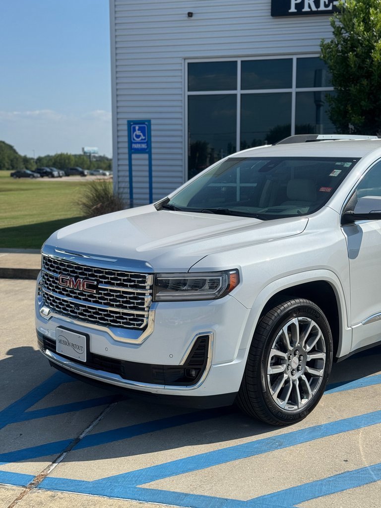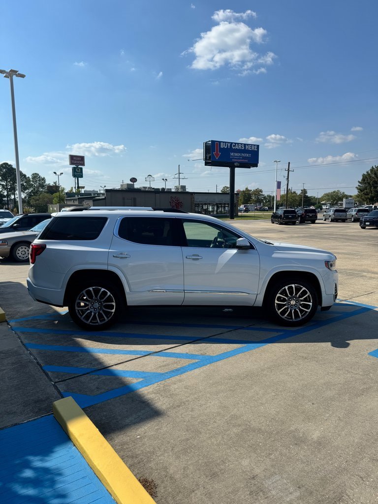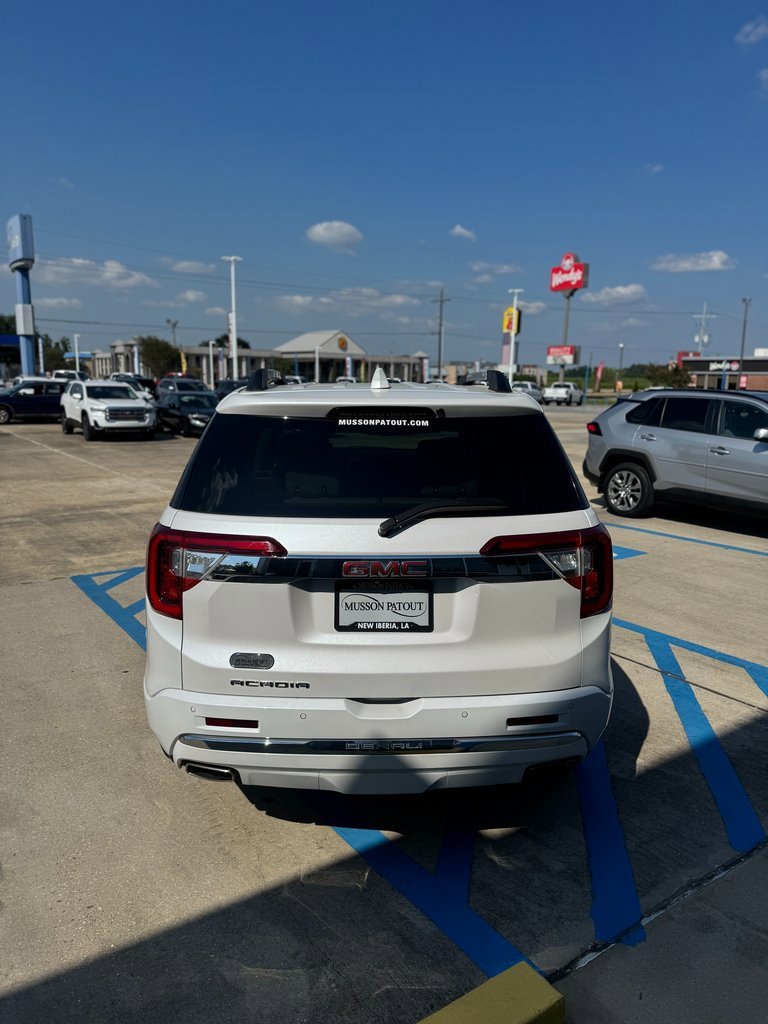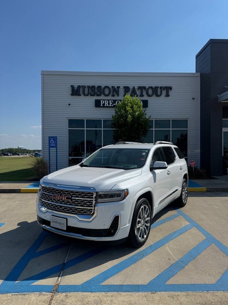 FWD, Dark Galvanized/Light Shale Leather, 20 Ultra Bright Machined Aluminum Wheels, 3.49 Final Drive Axle Ratio, 3rd row seats: split-bench, 4-Wheel Disc Brakes, 6-Passenger (2-2-2 Seating Configuration), 8 Speakers, 8-Way Power Driver Seat Adjuster, 8-Way Power Passenger Seat Adjuster, ABS brakes, Adaptive Cruise Control, Air Conditioning, Alloy wheels, AM/FM radio: SiriusXM with 360L, Apple CarPlay/Android Auto, Auto High-beam Headlights, Auto-dimming door mirrors, Auto-dimming Rear-View mirror, Automatic temperature control, Bose Premium 8-Speaker Audio System Feature, Brake assist, Bumpers: body-color, Compass, Delay-off headlights, Denali Technology Package, Driver door bin, Driver vanity mirror, Dual front impact airbags, Dual front side impact airbags, Electronic Stability Control, Emergency communication system: OnStar and GMC connected services capable, Enhanced Automatic Emergency Braking, Four wheel independent suspension, Front anti-roll bar, Front Bucket Seats, Front Center Armrest, Front dual zone A/C, Front fog lights, Front License Plate Bracket, Front reading lights, Fully automatic headlights, Garage door transmitter, HD Surround Vision, Heads-Up Display, Heated & Ventilated Driver & Front Passenger Seats, Heated door mirrors, Heated Driver & Front Passenger Seats, Heated front seats, Heated Rear Outboard Seating Positions, Heated rear seats, Heated steering wheel, Illuminated entry, Knee airbag, Low tire pressure warning, Memory seat, Navigation System, Occupant sensing airbag, Outside temperature display, Overhead airbag, Overhead console, Panic alarm, Passenger door bin, Passenger vanity mirror, Perforated Leather-Appointed Seat Trim, Power door mirrors, Power Driver Lumbar Control Seat Adjuster, Power driver seat, Power Liftgate, Power Passenger Lumbar Control Seat Adjuster, Power passenger seat, Power steering, Power windows, Preferred Equipment Group 5SA, Radio data system, Radio: AM/FM 8 Diagonal Multi-Touch Navigation, Rear air conditioning, Rear anti-roll bar, Rear Camera Mirror, Rear Camera Mirror Washer, Rear reading lights, Rear window defroster, Rear window wiper, Remote keyless entry, Security system, SiriusXM w/360L, Speed control, Speed-sensing steering, Spoiler, Steering wheel memory, Steering wheel mounted audio controls, Tachometer, Telescoping steering wheel, Tilt steering wheel, Traction control, Trip computer, Turn signal indicator mirrors, Variably intermittent wipers, Ventilated front seats, Voltmeter, Wireless Apple CarPlay/Wireless Android Auto. Clean CARFAX. Priced below KBB Fair Purchase Price! Odometer is 10614 miles below market average!White Frost Tricoat 2023 GMC Acadia Denali FWD 9-Speed Automatic 3.6L V6 SIDI 19/27 City/Highway MPG CARFAX One-Owner.Musson Patout Automotive Group proudly serves drivers from St. Martinville, Loreauville and Abbeville in New Iberia, LA with a maintained supply of sought-after new and pre-owned vehicles. Our family-owned and operated Automotive Group is committed to the community of New Iberia, LA. When Chrysler, Dodge, Jeep, Ram, GMC, Buick and Toyota drivers throughout Louisiana arrive at our location, customers are greeted by our Staff of friendly and courteous professionals who strive to create a pleasant atmosphere and smooth buying process. Come see us or visit us on the web at www.mussonpatout.com.