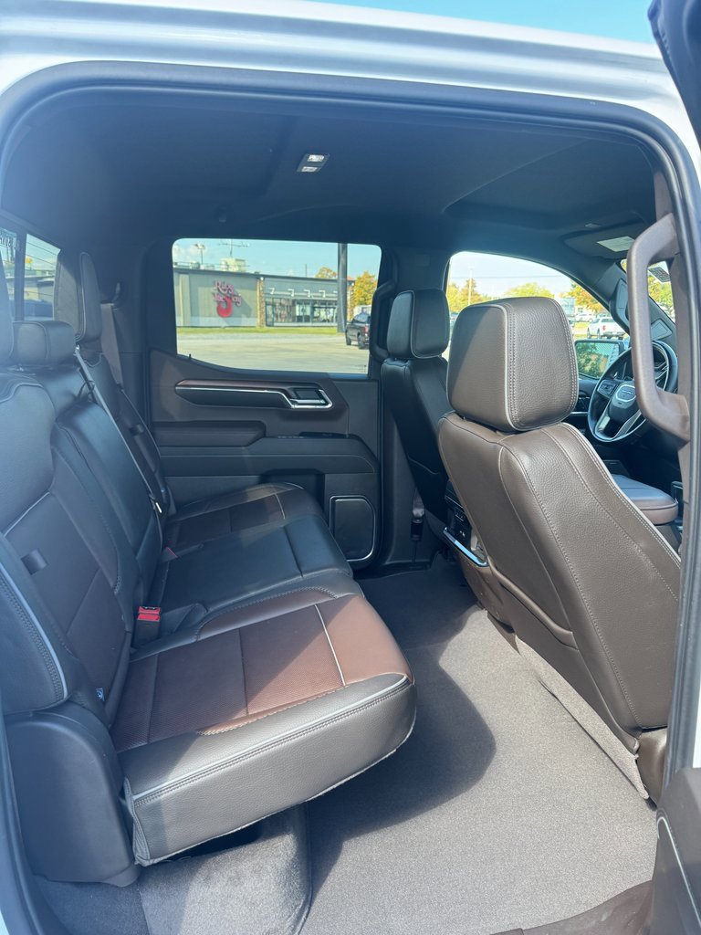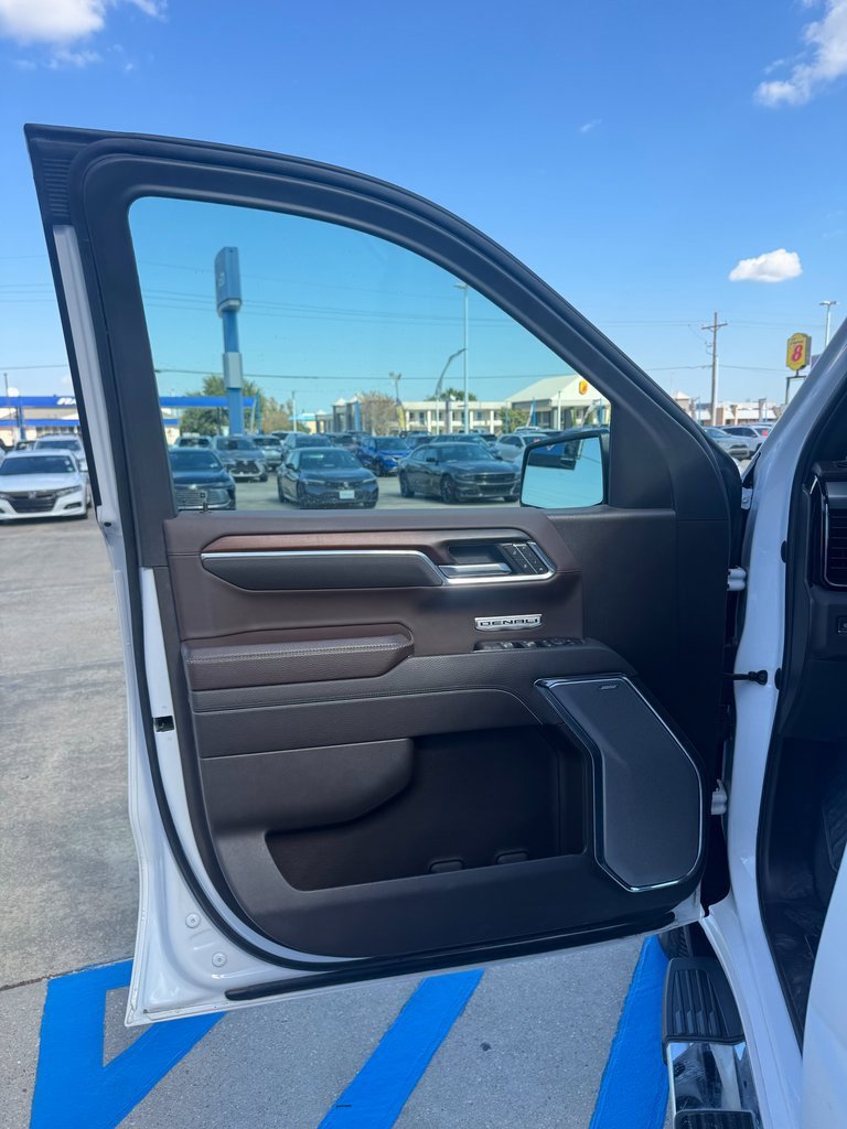 LOCAL TRADE, NON SMOKER, NAVIGATION, Apple CarPlay, 10-Speed Automatic, Atmosphere/Brownstone Leather, 12-Way Power Driver Seat Adjuster w/Lumbar, 12-Way Power Passenger Seat Adjuster w/Lumbar, 120-Volt Bed Mounted Power Outlet, 120-Volt Interior Power Outlet, 170 Amp Alternator, 2 Charge/Data USB Ports Inside Center Console, 2 Type-C Charge-Only Rear USB Ports, 2 USB Ports, 3.23 Rear Axle Ratio, 4-Wheel Disc Brakes, 7 Speakers, ABS brakes, Adaptive suspension, Air Conditioning, Alloy wheels, AM/FM radio: SiriusXM with 360L, Apple CarPlay/Android Auto, Auto High-beam Headlights, Auto-dimming door mirrors, Auto-dimming Rear-View mirror, Auto-Locking Rear Differential, Automatic temperature control, Auxiliary External Transmission Oil Cooler, Bed View Camera, Brake assist, Buckle to Drive, Bumpers: body-color, Chrome Header w/Signature Denali Chrome Grille, Chrome Recovery Hooks, Chrome Wheel To Wheel Assist Steps, Color-Keyed Carpeting Floor Covering, Compass, Deep-Tinted Glass, Delay-off headlights, Denali Premium Suspension w/Adaptive Ride Control, Driver door bin, Driver Memory, Driver vanity mirror, Dual front impact airbags, Dual front side impact airbags, Electric Rear-Window Defogger, Electronic Stability Control, Emergency communication system: OnStar and GMC connected services capable, Enhanced Automatic Emergency Braking, Floor-Mounted Center Console, Following Distance Indicator, Forge Perforated Leather Seat Trim, Forward Collision Alert, Front anti-roll bar, Front Bucket Seats, Front Center Armrest, Front dual zone A/C, Front fog lights, Front Pedestrian Braking, Front Rain-Sensing Wipers, Front reading lights, Front wheel independent suspension, Fully automatic headlights, Garage door transmitter, Genuine wood console insert, Genuine wood dashboard insert, Genuine wood door panel insert, GMC Connected Access Capable, HD Surround Vision, Heated 2nd Row Outboard Seats, Heated door mirrors, Heated Driver & Front Outboard Passenger Seating, Heated front seats, Heated rear seats, Heated steering wheel, Heavy-Duty Air Filter, Hitch Guidance, Hitch View, Illuminated entry, In-Vehicle Trailering System App, Integrated Trailer Brake Controller, IntelliBeam Automatic High Beam On/Off, Keyless Open & Start, Lane Keep Assist w/Lane Departure Warning, LED Cargo Area Lighting, Low tire pressure warning, Memory seat, Navigation System, Occupant sensing airbag, OnStar & GMC Connected Services Capable, Outside temperature display, Overhead airbag, Overhead console, Panic alarm, Passenger door bin, Passenger vanity mirror, Perimeter Lighting, Power Door Locks, Power door mirrors, Power driver seat, Power Front Passenger Windows w/Express Up/Down, Power Front Windows w/Driver Express Up/Down, Power passenger seat, Power Rake & Telescoping Steering Column, Power Rear Windows w/Express Down, Power Sliding Rear Window w/Rear Defogger, Power steering, Power windows, Preferred Equipment Group 5SA, Premium audio system: GMC Infotainment System, Premium Bose 7-Speaker Sound System, Push Button Start, Radio data system, Radio: Premium GMC Infotainment Audio System, Rain sensing wipers, Rear Cross Traffic Braking, Rear Pedestrian Detection, Rear reading lights, Rear seat center armrest, Rear step bumper, Rear Wheelhouse Liners, Rear window defroster, Remote keyless entry, Remote Vehicle Starter System, Safety Alert Seat, Security system, SiriusXM w/360L, Speed control, Speed-sensing steering, Split folding rear seat, Spray-On Pickup Bedliner w/Denali Logo, Steering Wheel Audio Controls, Steering wheel mounted audio controls, Tachometer, Telescoping steering wheel, Theft Deterrent System (Unauthorized Entry), Tilt steering wheel, Traction control, Trailer Camera Provisions, Trailer Side Blind Zone Alert, Trailering Package, Trip computer, Ultrasonic Front & Rear Park Assist, Universal Home Remote, Variably intermittent wipers, Ventilated Driver & Front Passenger Seats, Ventilated front seats,