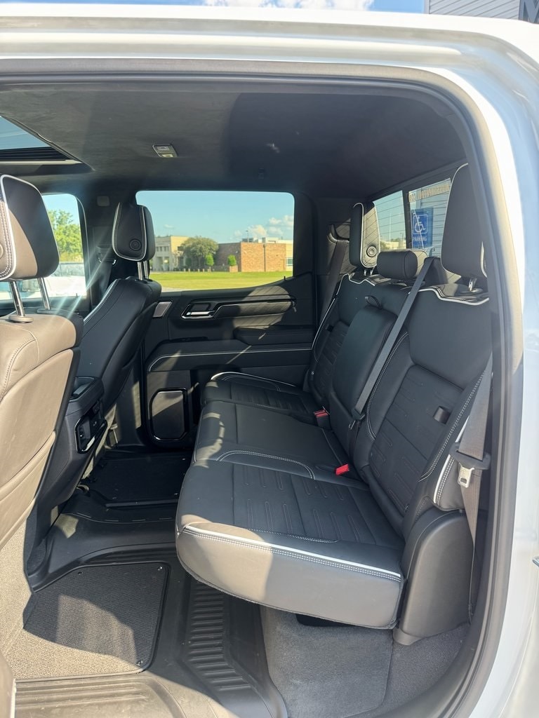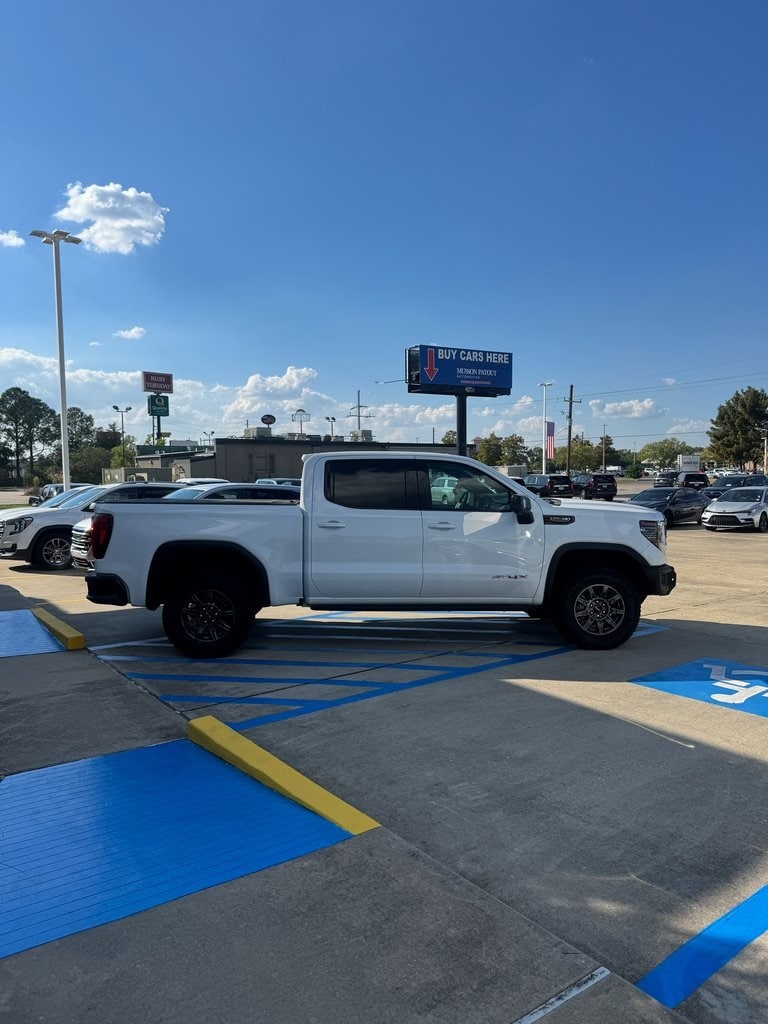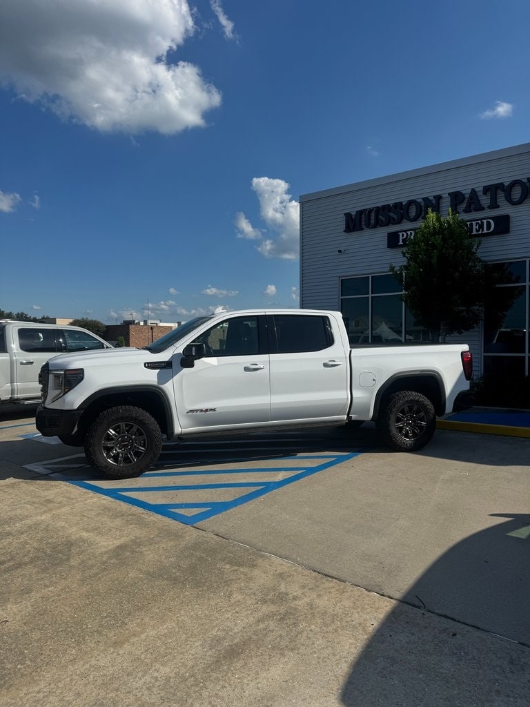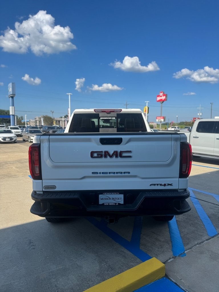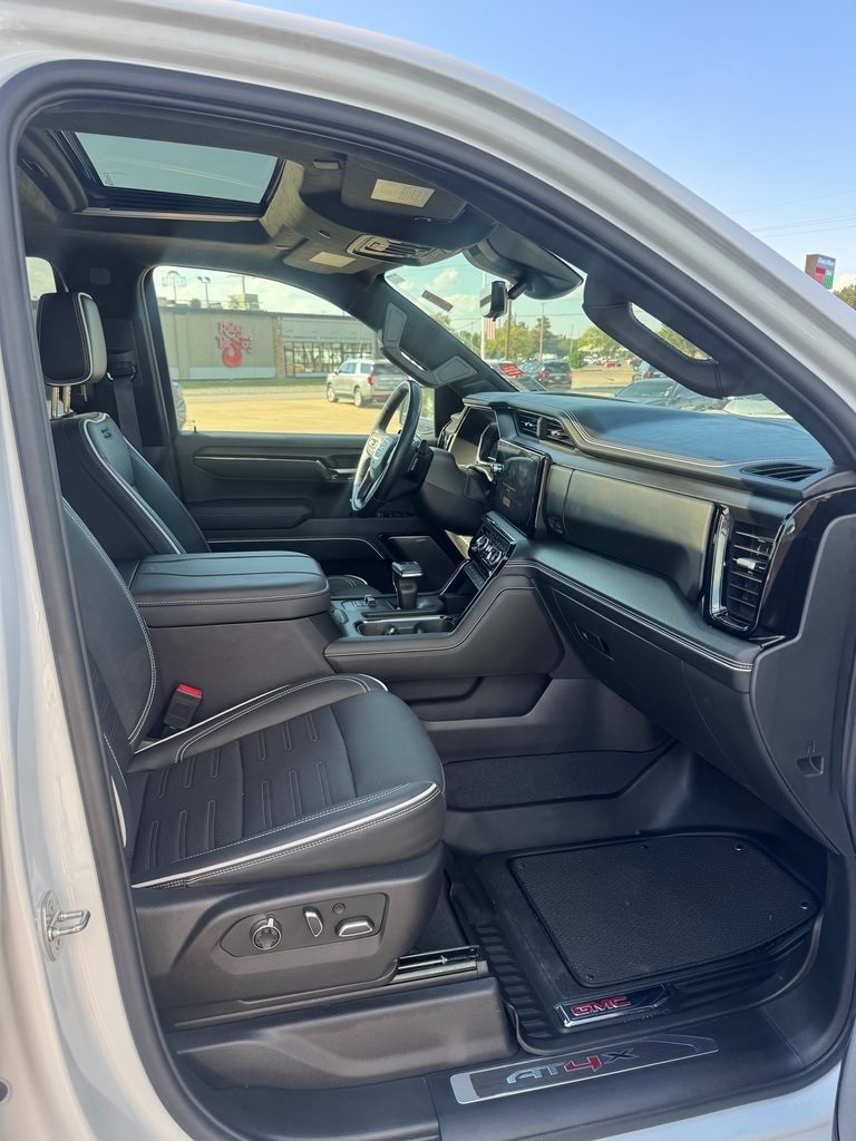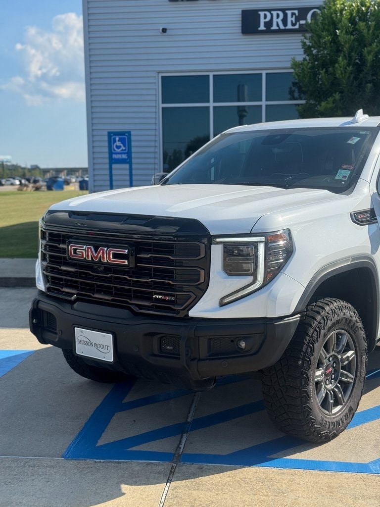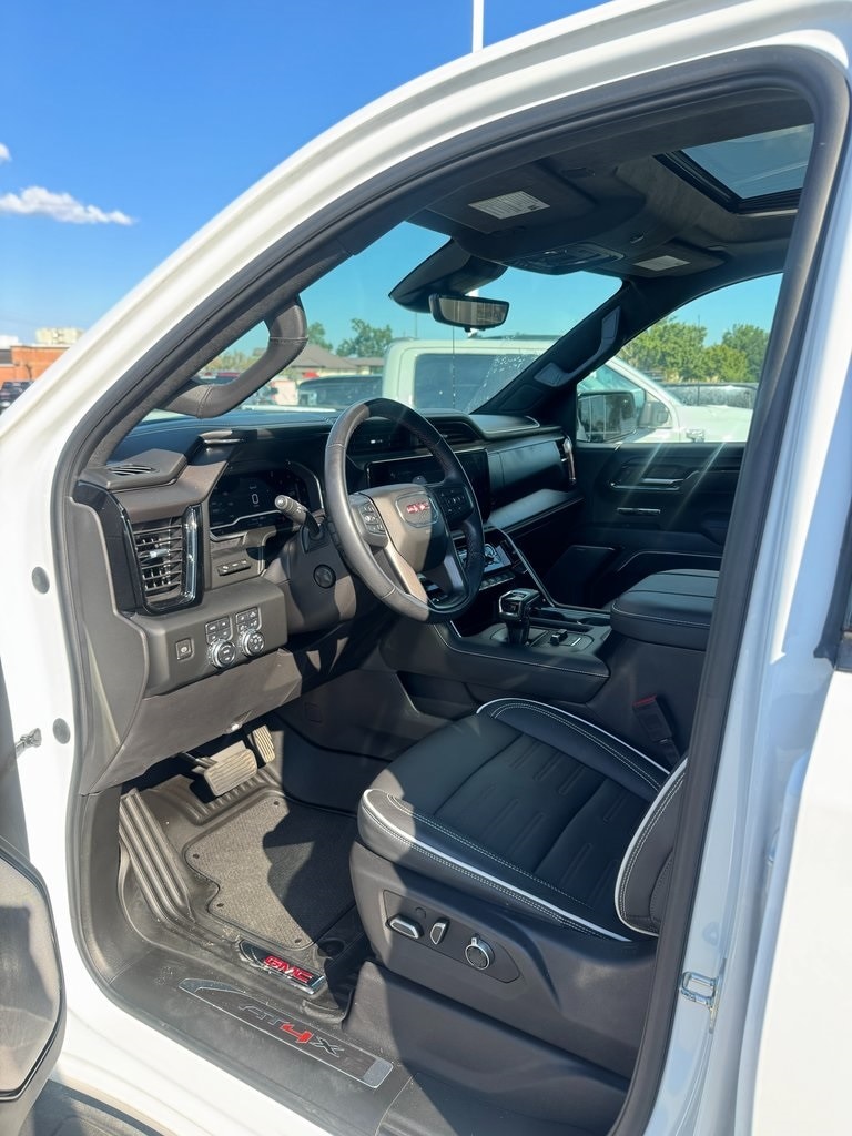 2024 GMC Sierra 1500 AT4X Summit White 4WD 10-Speed Automatic EcoTec3 6.2L V8 10-Speed Automatic, 4WD, Obsidian Rush Leather, 12 Speakers, 120-Volt Bed Mounted Power Outlet, 120-Volt Interior Power Outlet, 16-Way Power Driver Seat Adjuster w/Lumbar, 16-Way Power Passenger Seat Adjuster w/Lumbar, 170 Amp Alternator, 2 Charge/Data USB Ports Inside Center Console, 2 Type-C Charge-Only Rear USB Ports, 2 USB Ports, 220 Amp Alternator, 3.23 Rear Axle Ratio, 4-Wheel Disc Brakes, ABS brakes, Air Conditioning, Alloy wheels, AM/FM radio: SiriusXM with 360L, Apple CarPlay/Android Auto, Auto High-beam Headlights, Auto-dimming door mirrors, Auto-dimming Rear-View mirror, Automatic Emergency Braking, Automatic temperature control, Auxiliary External Transmission Oil Cooler, Bed View Camera, Block heater, Bose Premium Series w/12-Speaker System, Brake assist, Buckle to Drive, Color-Keyed Carpeting Floor Covering, Compass, Console-Mounted Safe (LPO), Deep-Tinted Glass, Delay-off headlights, Driver door bin, Driver Memory, Driver vanity mirror, Driver-Selectable Full-Locking Front Differential, Driver-Selectable Full-Locking Rear Differential, Dual Active Exhaust, Dual front impact airbags, Dual front side impact airbags, Electric Rear-Window Defogger, Electronic Stability Control, Floor-Mounted Center Console, Following Distance Indicator, Forward Collision Alert, Front anti-roll bar, Front Bucket Seats, Front Center Armrest, Front dual zone A/C, Front fog lights, Front License Plate Kit, Front Pedestrian Braking, Front Prem Floor Liners w/Removable Carpet Insert, Front Rain-Sensing Wipers, Front reading lights, Front wheel independent suspension, Full Grain Leather Seat Trim, Fully automatic headlights, Garage door transmitter, Genuine wood dashboard insert, Genuine wood door panel insert, Gloss Black Header w/Drk Nickel Grille Insert Bars, GMC Connected Access Capable, HD Surround Vision, Heads-Up Display, Heated 2nd Row Outboard Seats, Heated door mirrors, Heated Driver & Front Outboard Passenger Seating, Heated front seats, Heated rear seats, Heated steering wheel, Heavy-Duty Air Filter, Hill Descent Control, Hitch Guidance, Hitch View, Illuminated entry, In-Vehicle Trailering System App, Integrated Trailer Brake Controller, IntelliBeam Automatic High Beam On/Off, Keyless Open & Start, Lane Keep Assist w/Lane Departure Warning, LED Cargo Area Lighting, Low tire pressure warning, Memory seat, Multicolor 15" Diagonal Head-Up Display, MultiPro Tailgate Audio System by Kicker (LPO), Navigation System, Not Equipped w/Steering Column Lock, Occupant sensing airbag, Off-Road Suspension, OnStar & GMC Connected Services Capable, Outside temperature display, Overhead airbag, Overhead console, Panic alarm, Passenger door bin, Passenger vanity mirror, Perimeter Lighting, Power Door Locks, Power door mirrors, Power driver seat, Power Front Passenger Windows w/Express Up/Down, Power Front Windows w/Driver Express Up/Down, Power moonroof, Power passenger seat, Power Rake & Telescoping Steering Column, Power Rear Windows w/Express Down, Power Sliding Rear Window w/Rear Defogger, Power steering, Power Sunroof, Power windows, Preferred Equipment Group 4SG, Premium audio system: GMC Infotainment System, Push Button Start, Radio data system, Radio: Premium GMC Infotainment Audio System, Rain sensing wipers, Rear Cross Traffic Braking, Rear Pedestrian Detection, Rear Prem Floor Liners w/Removable Carpet Insert, Rear reading lights, Rear seat center armrest, Rear step bumper, Rear Wheelhouse Liners, Rear window defroster, Remote keyless entry, Remote Vehicle Starter System, REV Hard-Folding Tonneau Cover (LPO), Safety Alert Seat, Security system, SiriusXM w/360L, Speed control, Speed-sensing steering, Split folding rear seat, Spray-On Pickup Bedliner w/AT4X Logo, Steering Wheel Audio Controls, Steering wheel mounted audio controls, Tachometer, Telescoping steering wheel, Theft Deterrent System (Unauthorized Entry), Tilt steering wheel, Traction control, Trailer