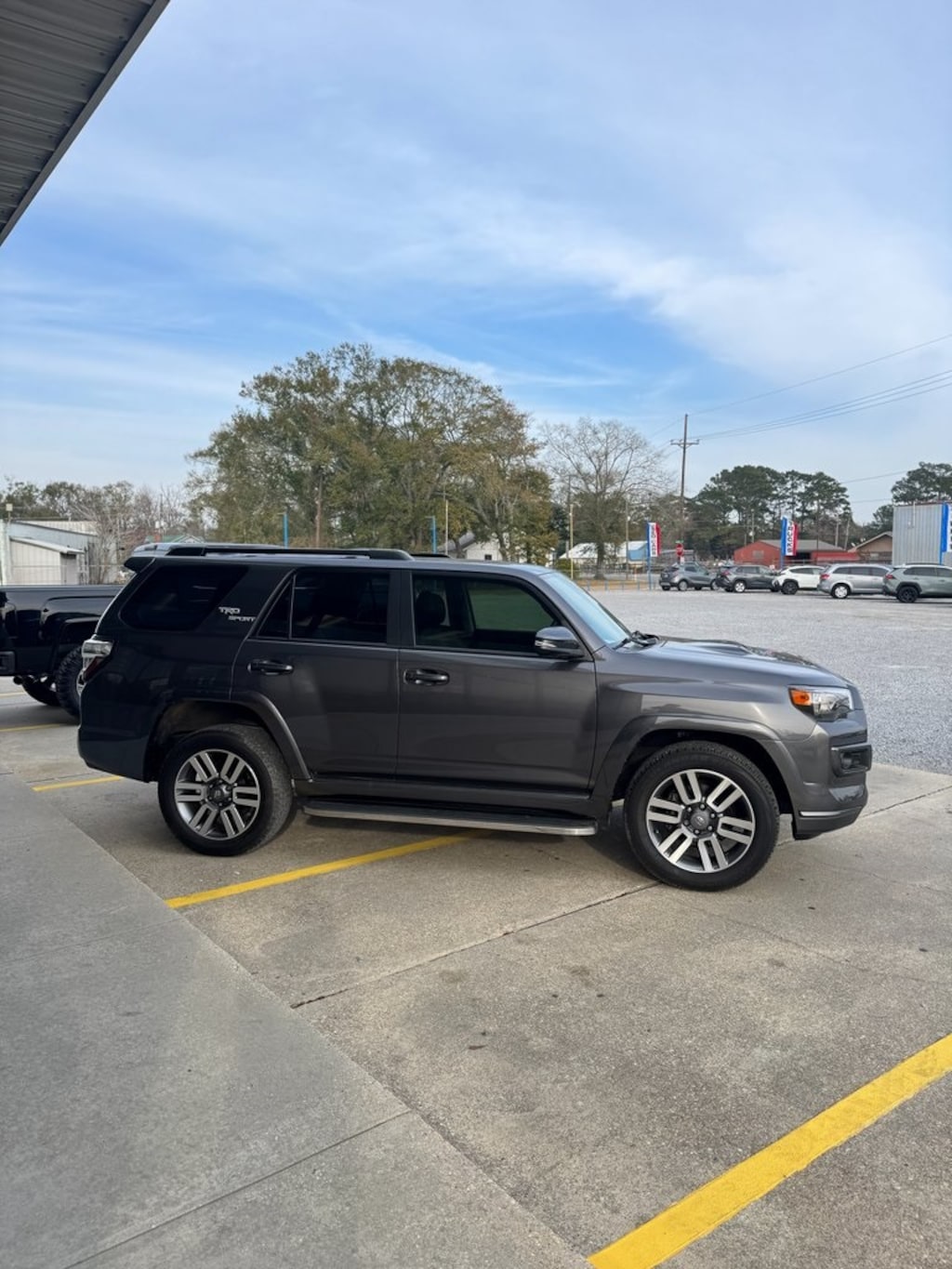 2023 Toyota 4Runner TRD Sport Gray 4WD 5-Speed with ECT 4.0L V6 DOHC 24V 4WD, Black/Graphite w/Leather Seat Trim, 3.727 Axle Ratio, 4-Wheel Disc Brakes, 8 Speakers, ABS brakes, Air Conditioning, Alloy wheels, AM/FM radio: SiriusXM, Anti-whiplash front head restraints, Apple CarPlay/Android Auto, Auto High-beam Headlights, Black Roof Rails, Brake assist, Bumpers: body-color, Driver door bin, Driver vanity mirror, Dual front impact airbags, Dual front side impact airbags, Electronic Stability Control, Emergency communication system: Safety Connect (1-year trial), Exterior Parking Camera Rear, Front anti-roll bar, Front Bucket Seats, Front Center Armrest, Front fog lights, Front reading lights, Front wheel independent suspension, Heated door mirrors, Illuminated entry, Knee airbag, Leather Shift Knob, Leather steering wheel, Low tire pressure warning, Occupant sensing airbag, Outside temperature display, Overhead airbag, Overhead console, Panic alarm, Passenger door bin, Passenger vanity mirror, Power door mirrors, Power driver seat, Power steering, Power windows, Radio: Audio, Rear anti-roll bar, Rear seat center armrest, Rear window defroster, Rear window wiper, Remote keyless entry, Security system, Shift Knob, SofTex Seat Trim, Speed control, Speed-sensing steering, Split folding rear seat, Spoiler, Steering wheel mounted audio controls, Tachometer, Telescoping steering wheel, Tilt steering wheel, Traction control, TRD Sport Badge, TRD Sport Carpet Floor Mats, TRD Sport Package, Trip computer, Variably intermittent wipers, Wheels: 20" Unique Dual 6-Spoke Alloy.